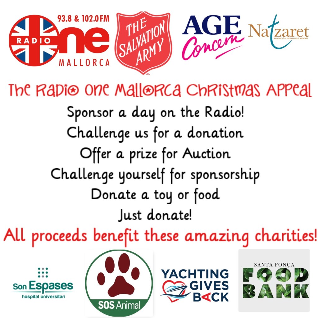 One thing I’ve learnt during my time here on the island is there are lots of very generous people out there. Remember even in the height of the pandemic the Radiothon managed to raise a record 30,948.82€! There are 62 sleeps to Christmas, so this year, between now and the 18th of December we’re asking you to donate to the Radio One Mallorca Christmas Appeal. We can’t do these things without your help and anything you can do, we and the charities are very grateful.
