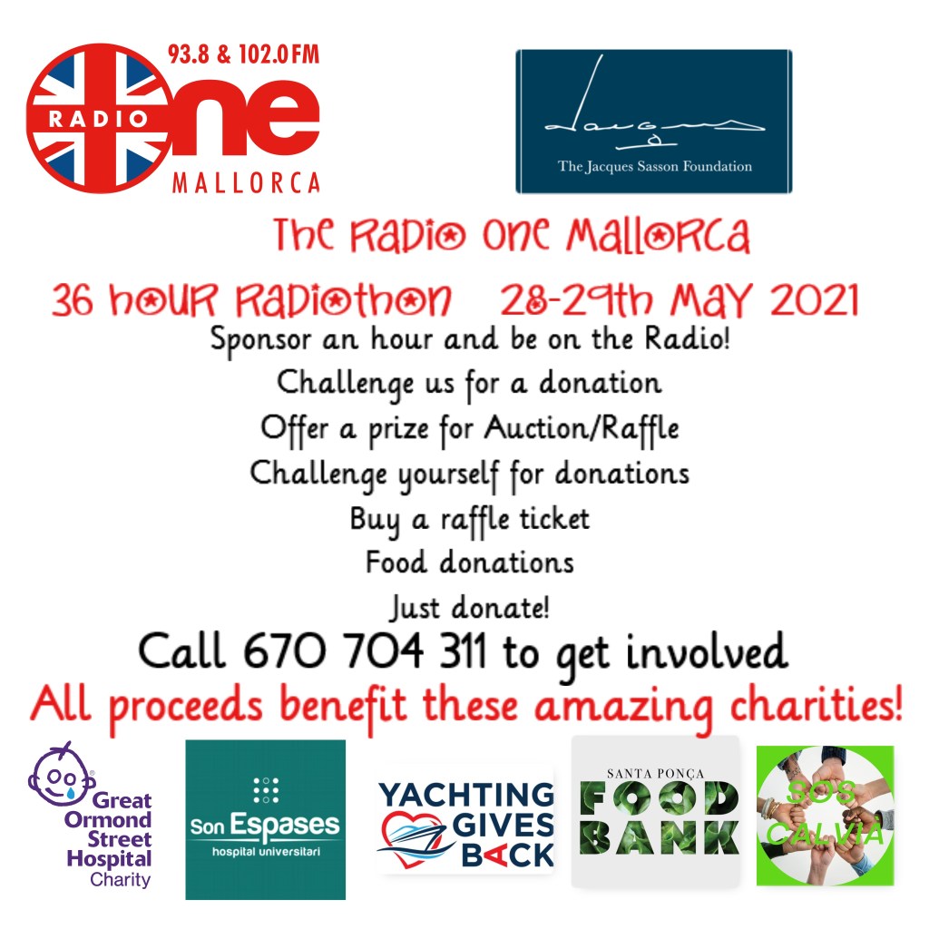 Our 2021 Radiothon Charities are Great Ormond Street Children’s Hospital, Son Espases Intensive Care & Pediatric Unit, Yachting Gives Back, Santa Ponsa Food Bank, SOS Calvia.
